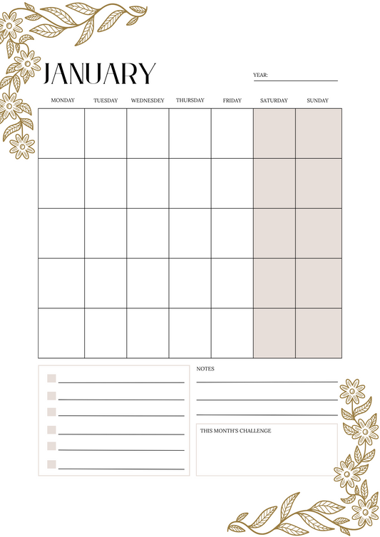 GRAY GOLD MONTHLY CALENDARRegular price $5.99 USDRegular priceUnit price per-