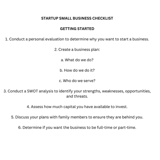 STARTUP PRODUCT-BASED SMALL BUSINESS CHECKLIST
