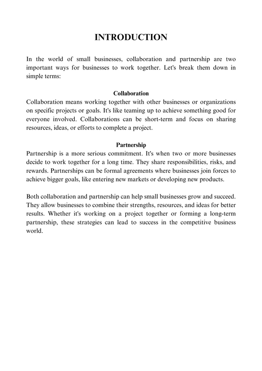COLLABORATION/ PARTNERSHIP WORKBOOK FOR SMALL BUSINESSES