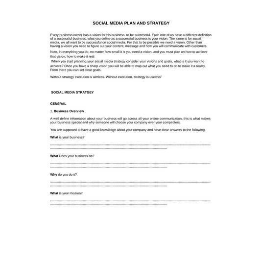 SOCIAL MEDIA WORKBOOK: PLAN AND STRATEGY