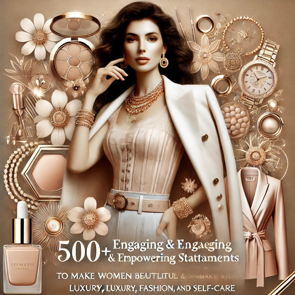 500+ ENGAGING & EMPOWERING STATEMENTS TO MAKE WOMEN FEEL BEAUTIFUL, STYLISH, AND CONFIDENT WHILE EMBRACING LUXURY, FASHION, AND SELF-CARE.