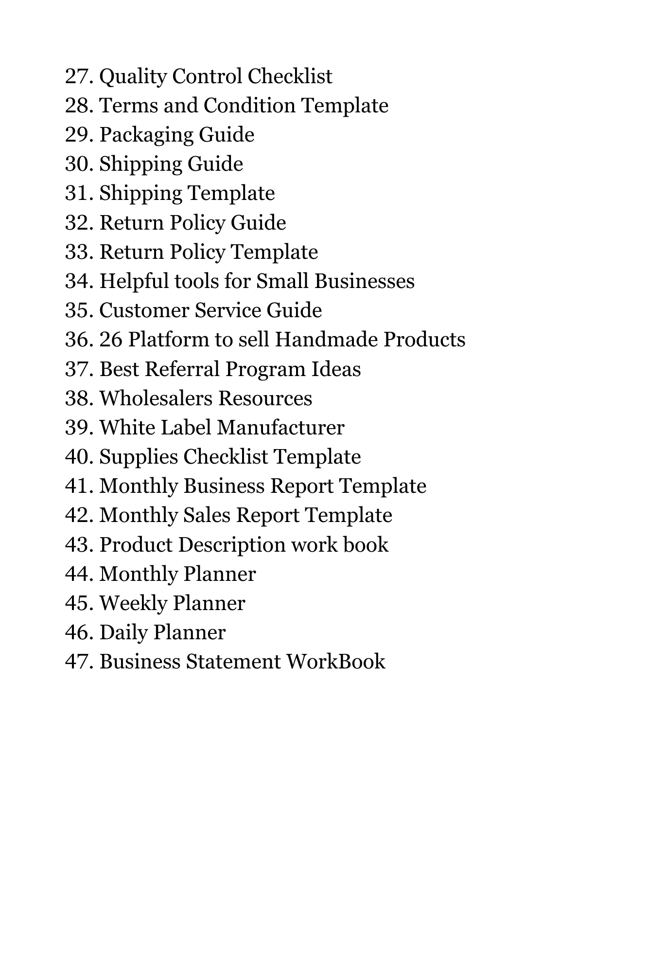 25. Quality Control Checklist: Ensure your products meet high standards of quality to satisfy your customers.