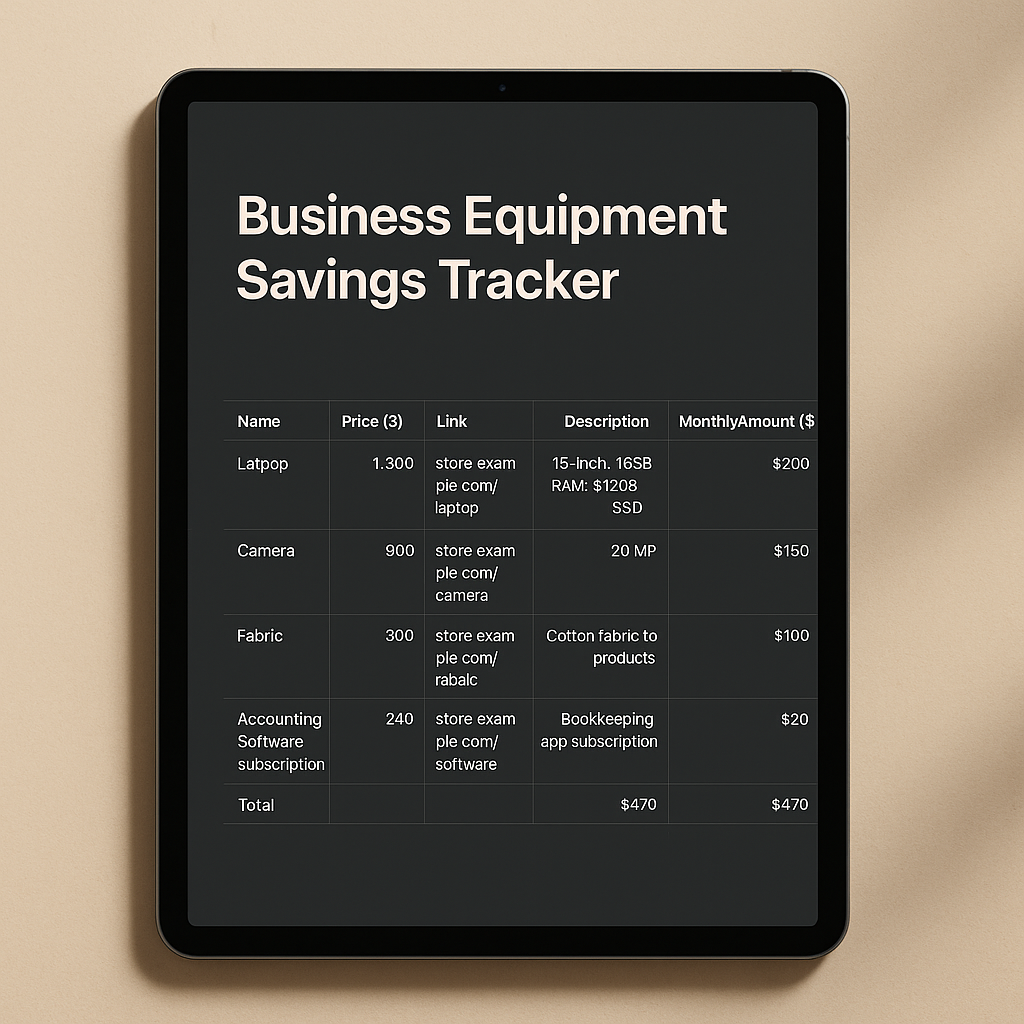 Whether you're opening a handmade jewelry studio, a digital business, or a product-based venture, this tracker will guide your financial planning step-by-step.