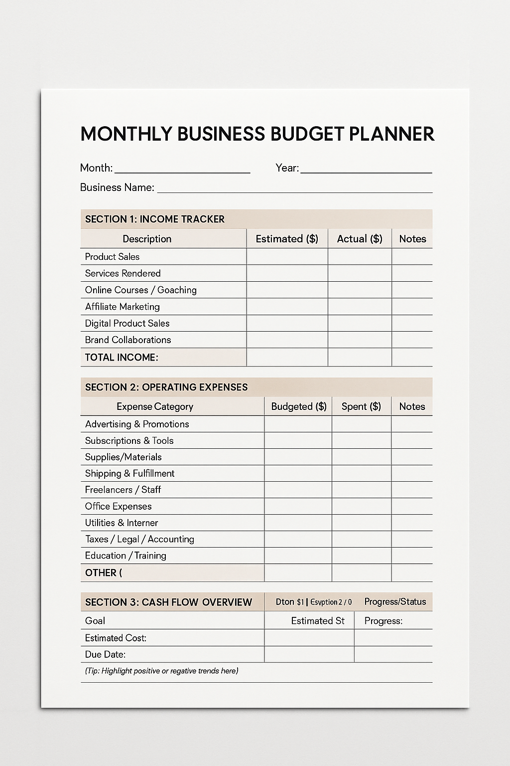 Perfect for budgeting, bookkeeping, and planning a profitable month!
