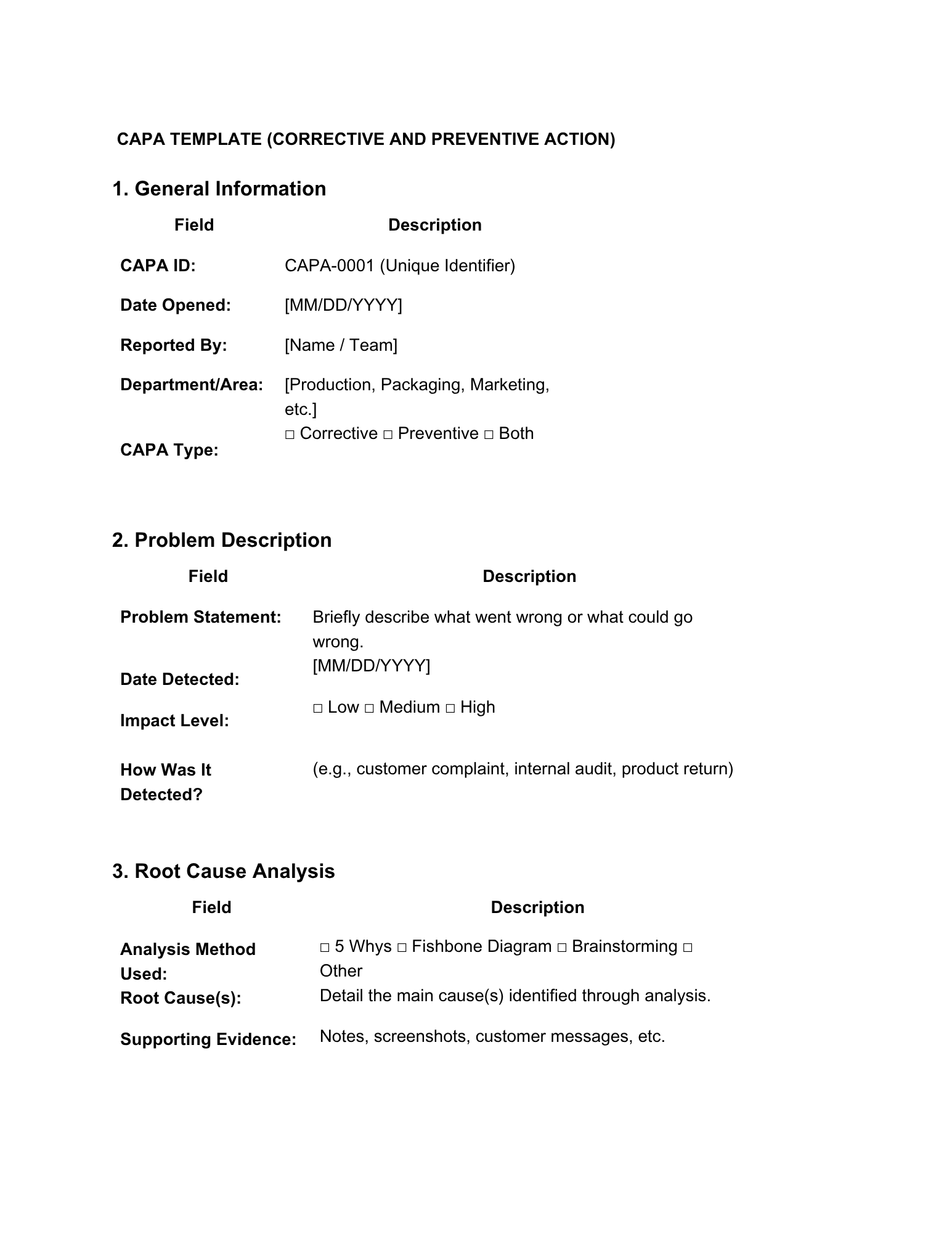 CAPA , 5 WHYS & FISHBONE DIAGRAM NOTION TEMPLATES