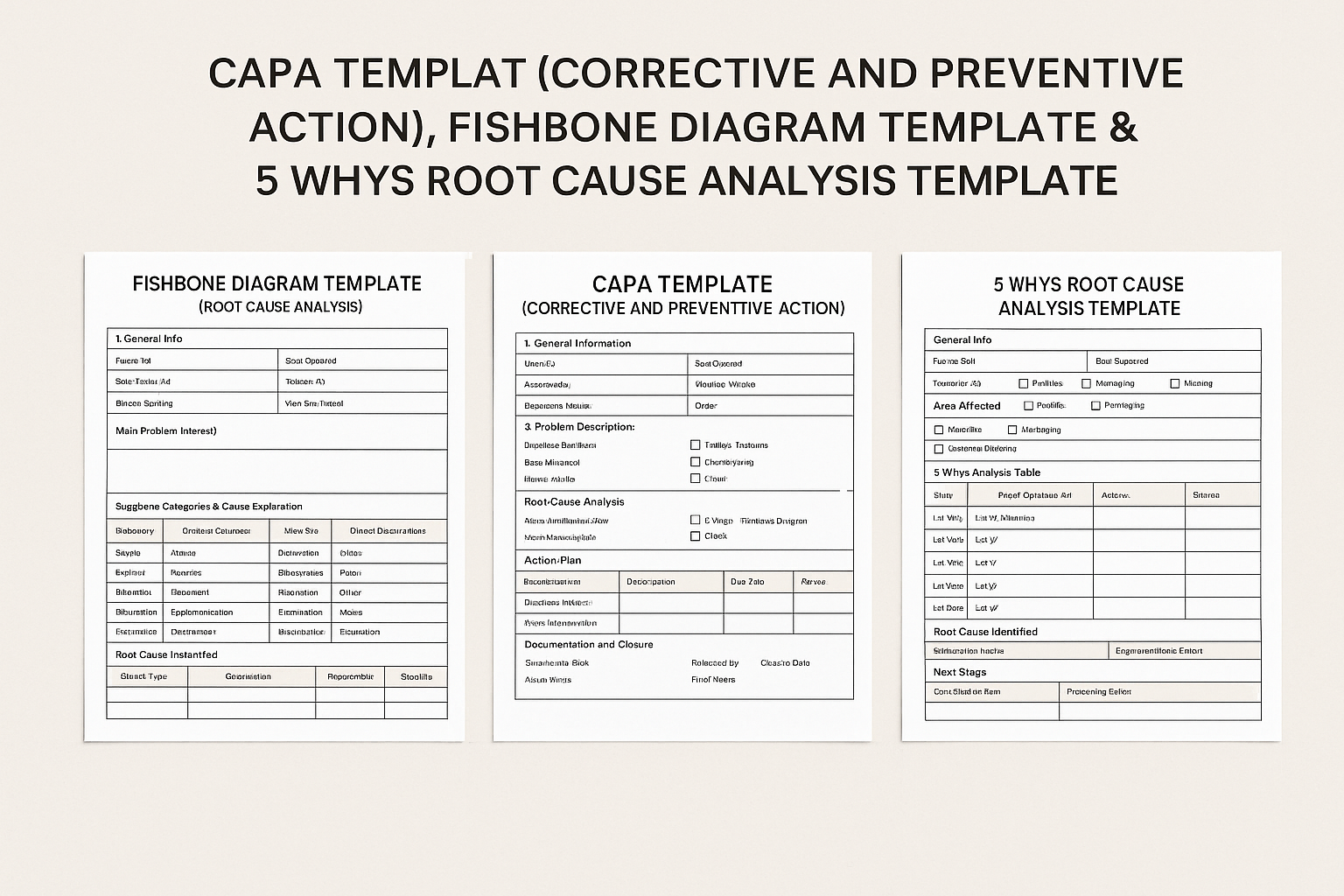 CAPA TEMPLATE (CORRECTIVE AND PREVENTIVE ACTION) , FISHBONE DIAGRAM TEMPLATE & 5 WHYS ROOT CAUSE ANALYSIS TEMPLATE