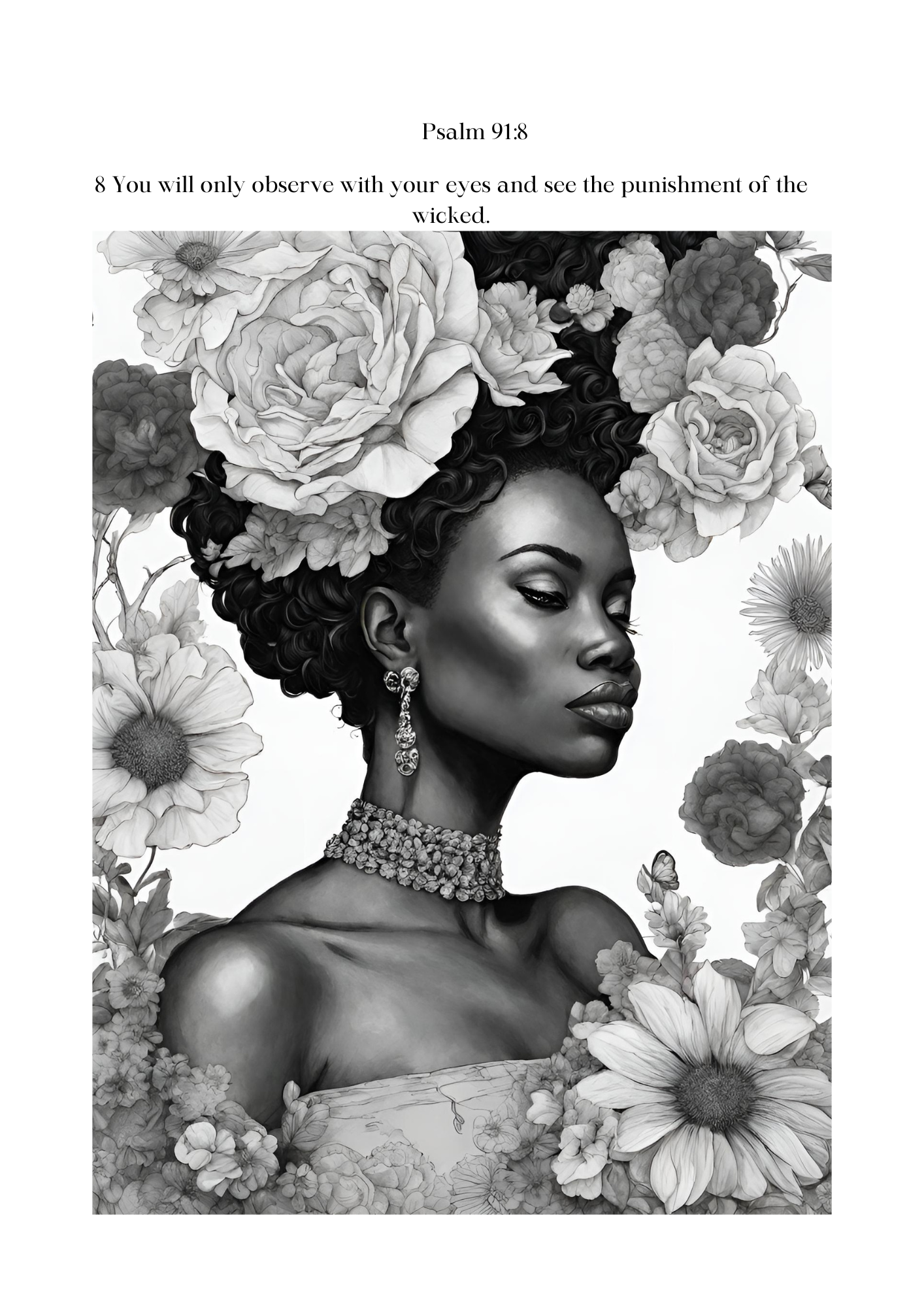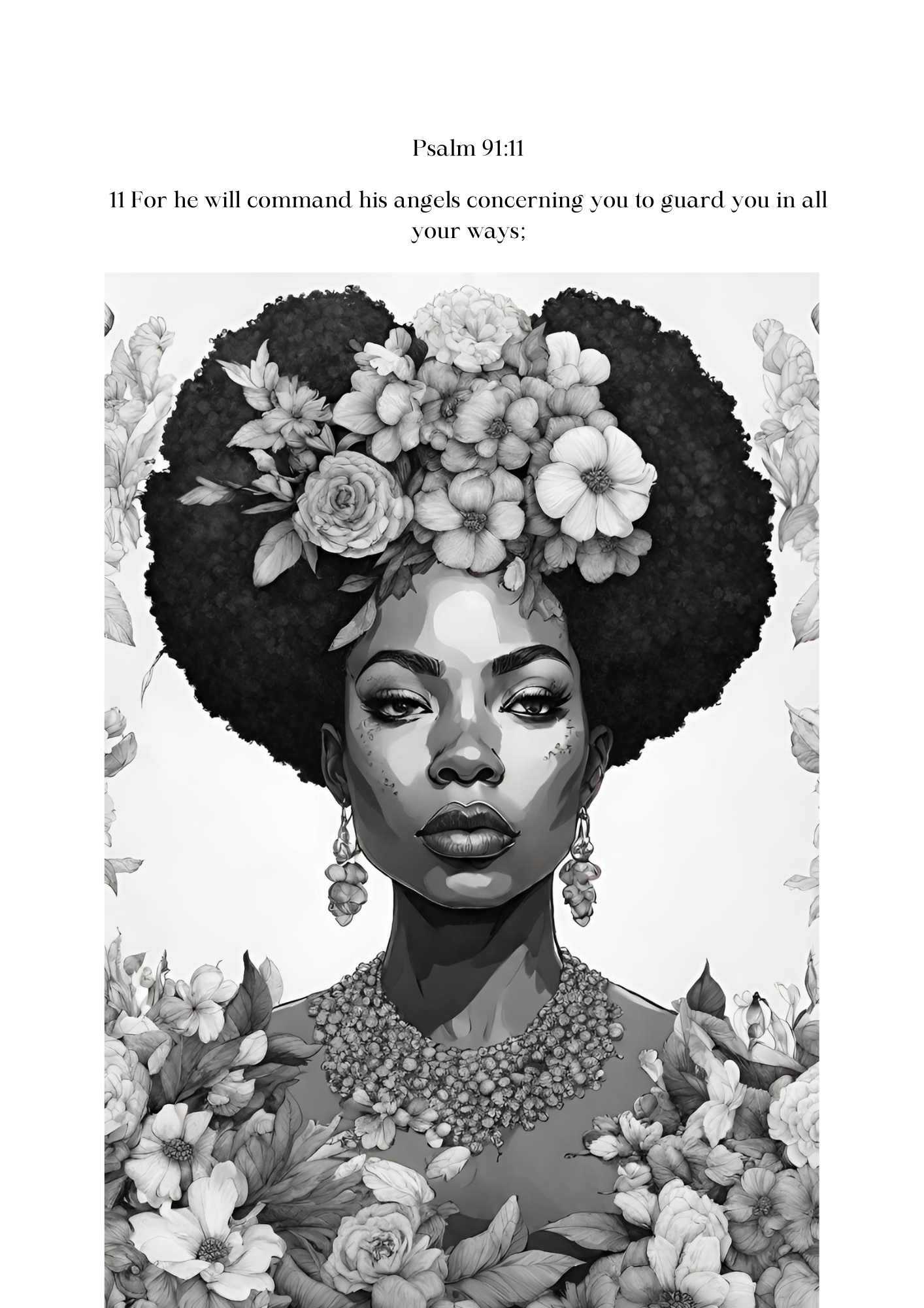 22 Inspirational Pages: The book contains 22 pages, each dedicated to a verse from Psalm 91. Each page is carefully crafted to complement the verse, providing a visual representation that enhances your understanding and reflection.