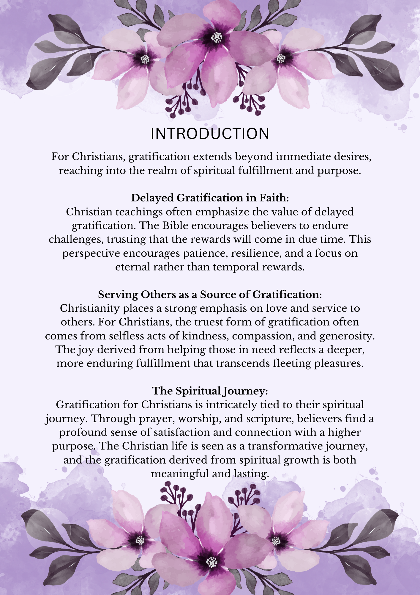 Gratification is finding fulfillment and satisfaction in a relationship with God, following moral principles and living a life in accordance with religious teachings.As christians we must renew our hearts and minds to first please God rather than gratifying or flesh.