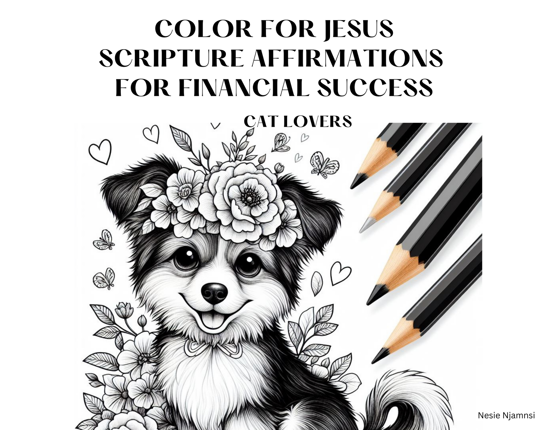 Color For Jesus: Scripture Affirmations on Financial sucess, is a coloring book designed for christian to relax by coloring and while relaxing memorize the world of God on financial success in the process. This coloring book is designed for dog-lovers that is all images are dogs for you to color. Feed your spirit at all times.