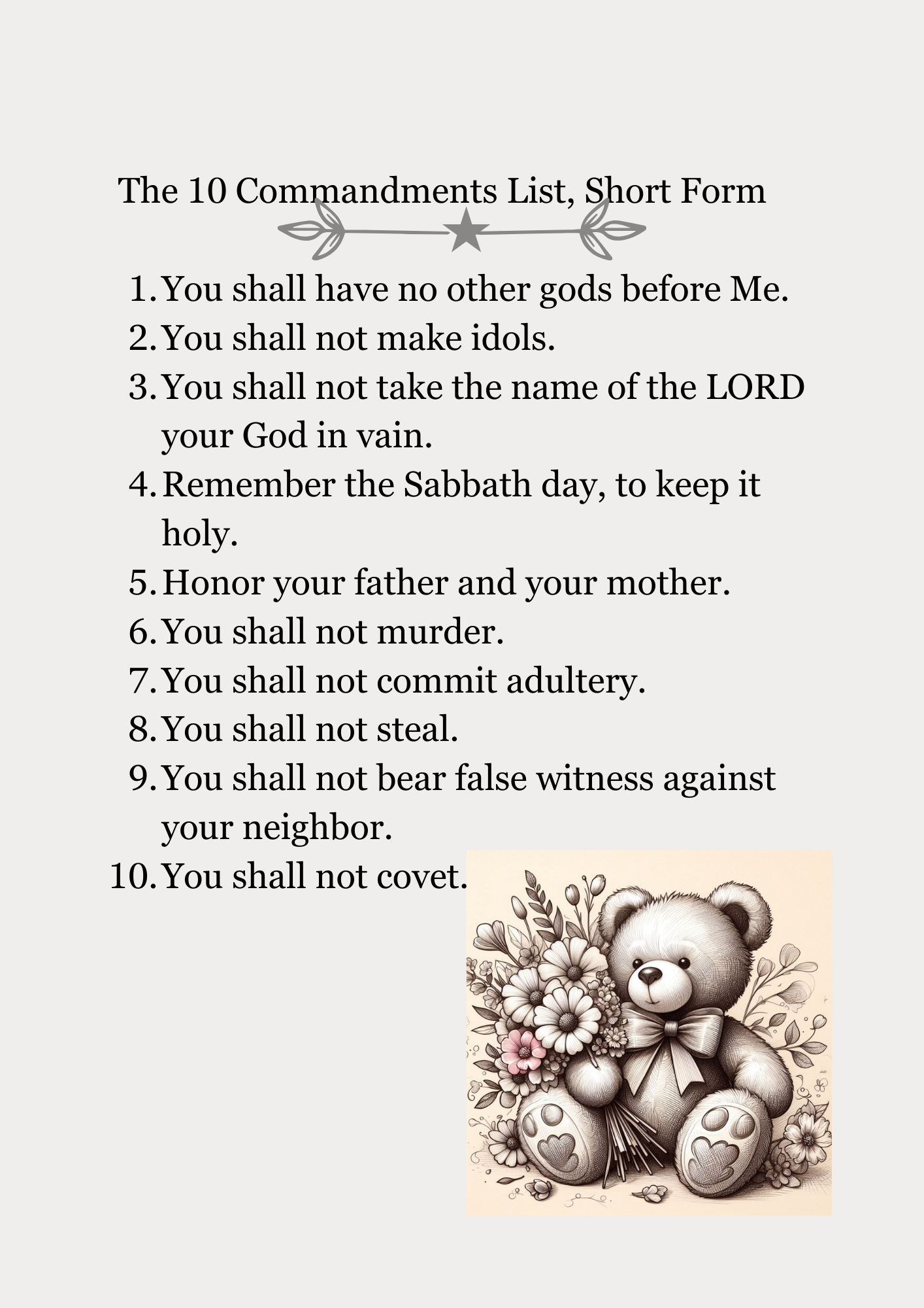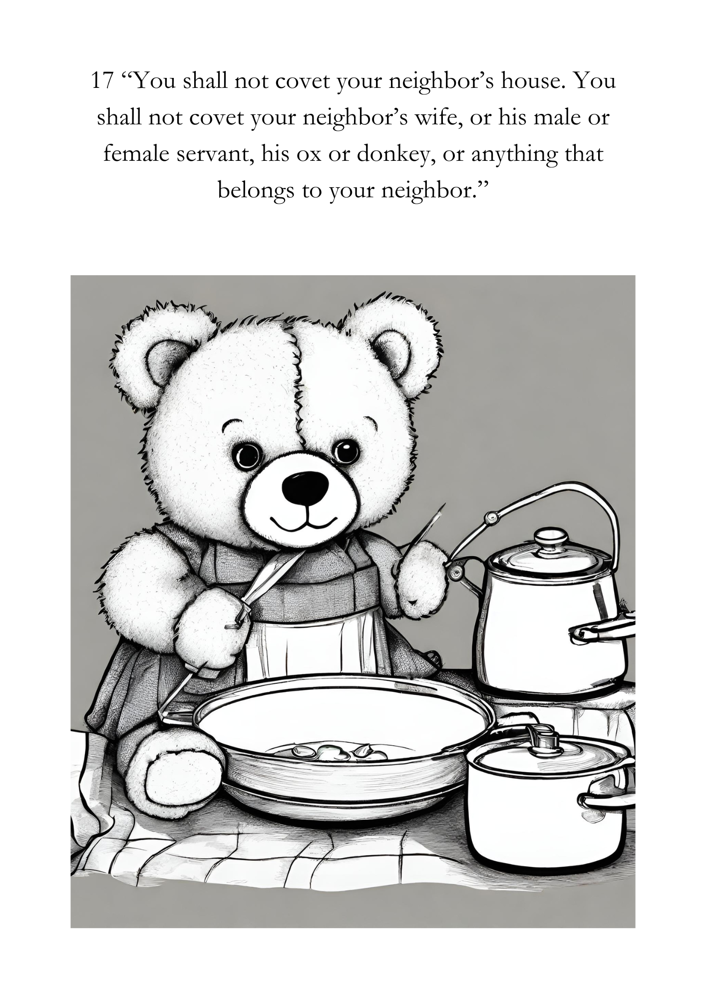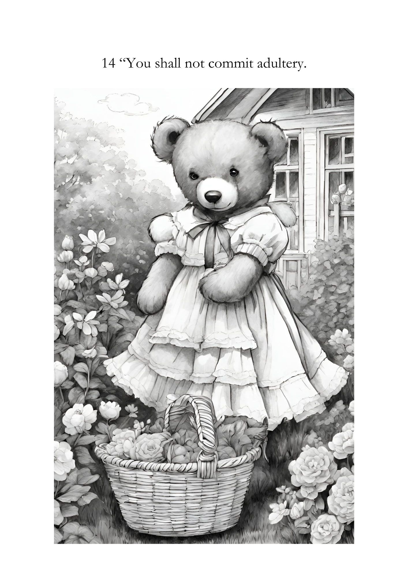 Color a bear while the memorise the Ten Commandment and you meditate on it.