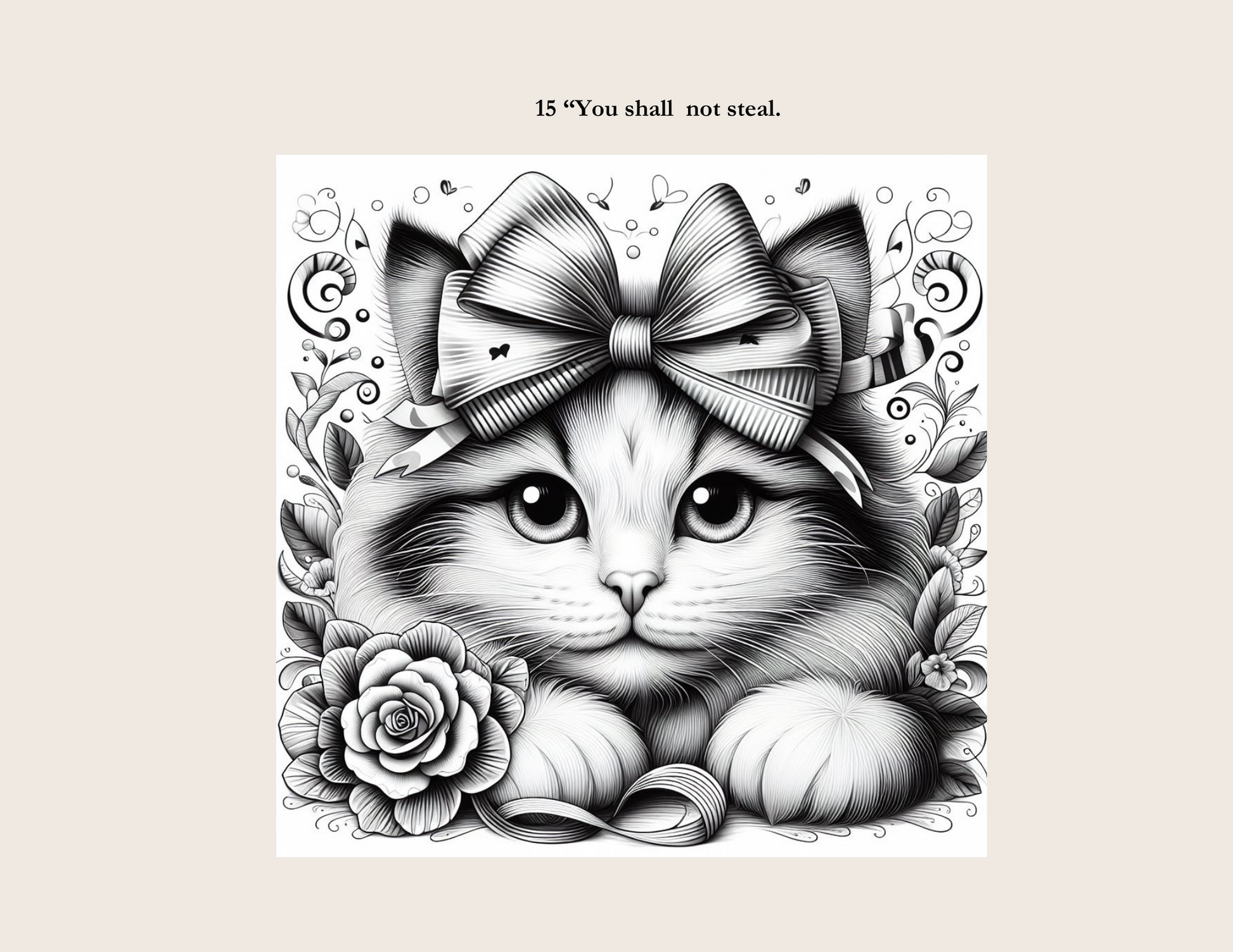 Color a cat to help you relax and at the same time help you memorize The ten commandment. Meditate on it while you color and use it to pray.