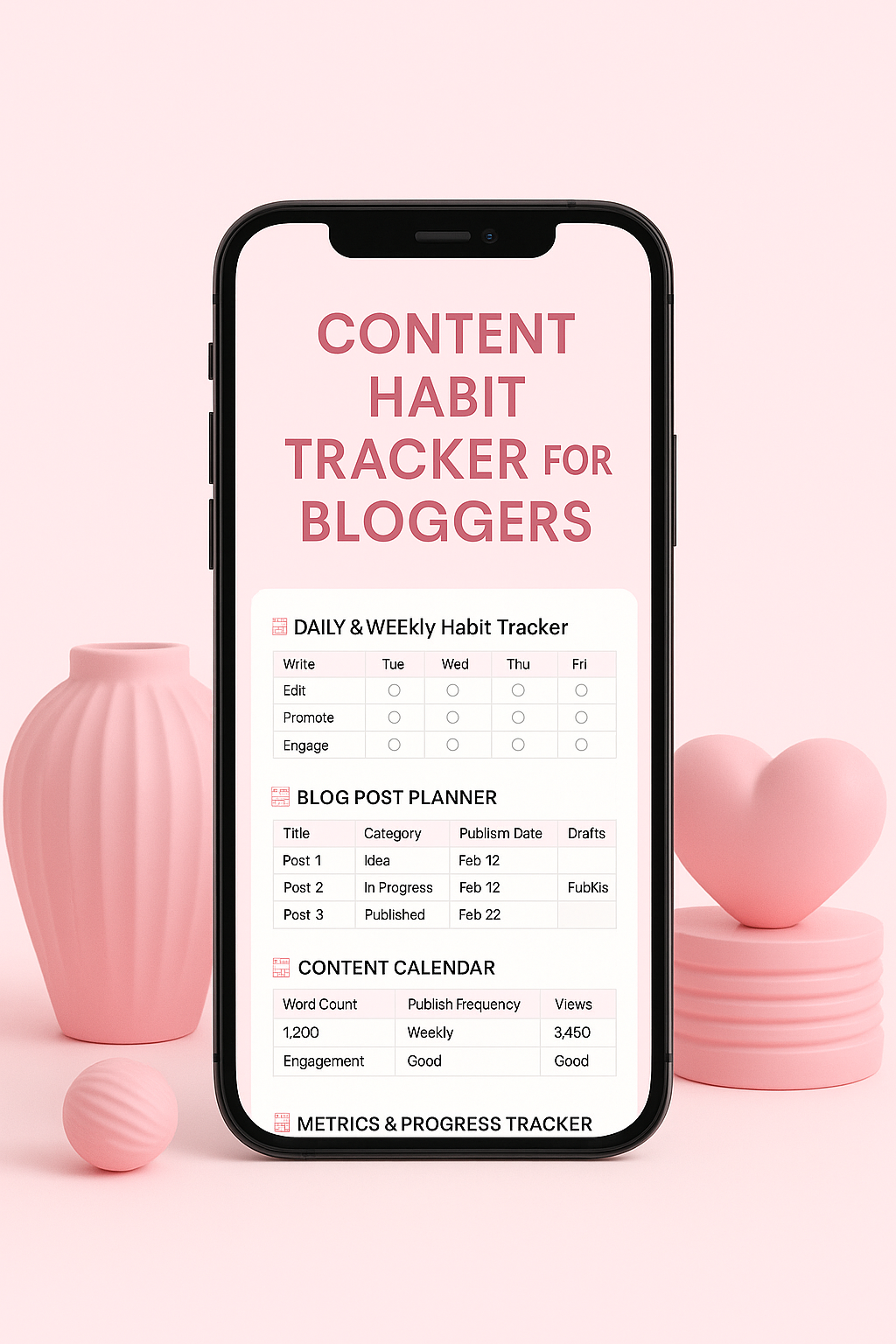- Daily & Weekly Habit Tracker – Stay on top of key blogging routines like writing, editing, promoting, and engaging.