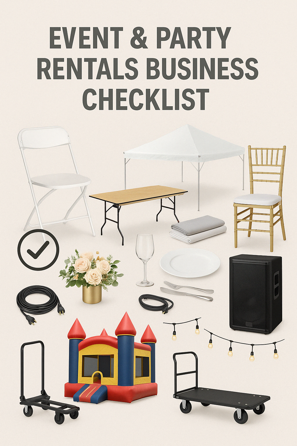 Kickstart your event rental empire with this all-in-one checklist designed to help you organize, launch, and grow a professional rental business. Whether you're renting tables, chairs, linens, or bounce houses, this free download walks you through everything you need—from essential rental categories to materials, supplies, equipment, and top-rated apps and websites to run your business efficiently.