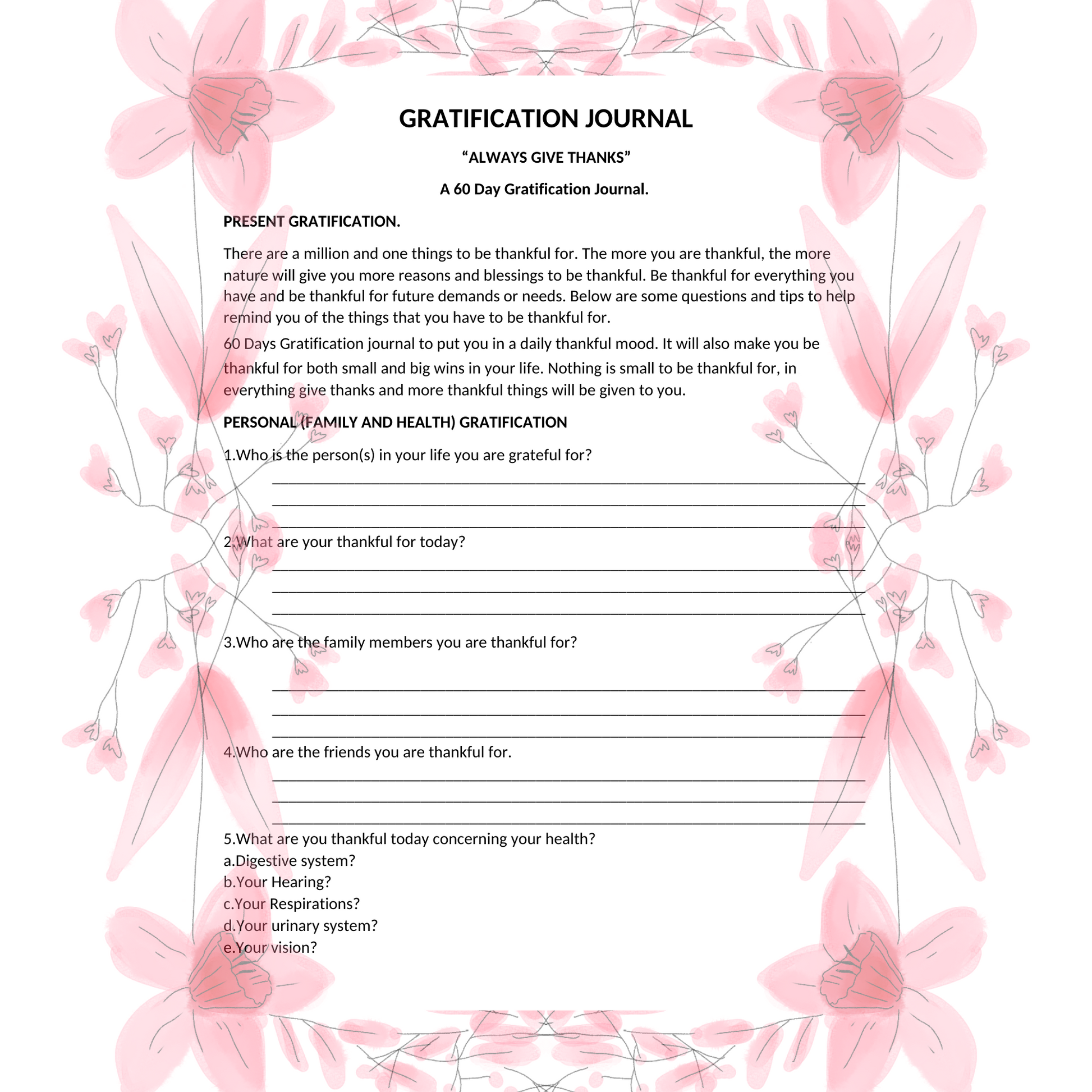 This is a gratification journal design to help put you in an always gratification mood. The more you are thankful the more good things happen to you in order for you to continue being thankful. Always give thanks to little or big wins.