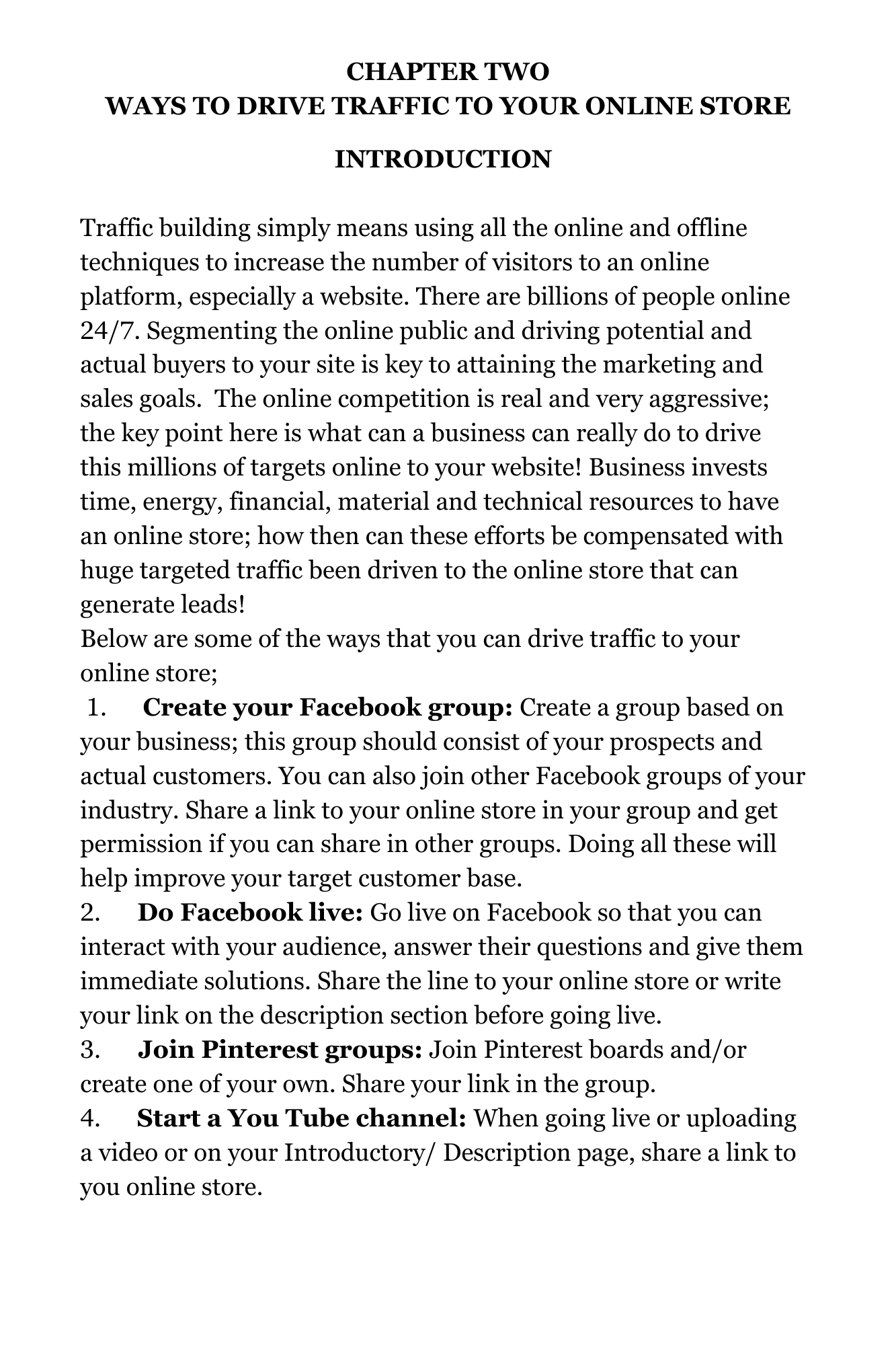 There are so many sales channels and many different ways to drive traffic to your online store. This 31 page ebook detailly outlines all the ways to drive traffic to your online store.