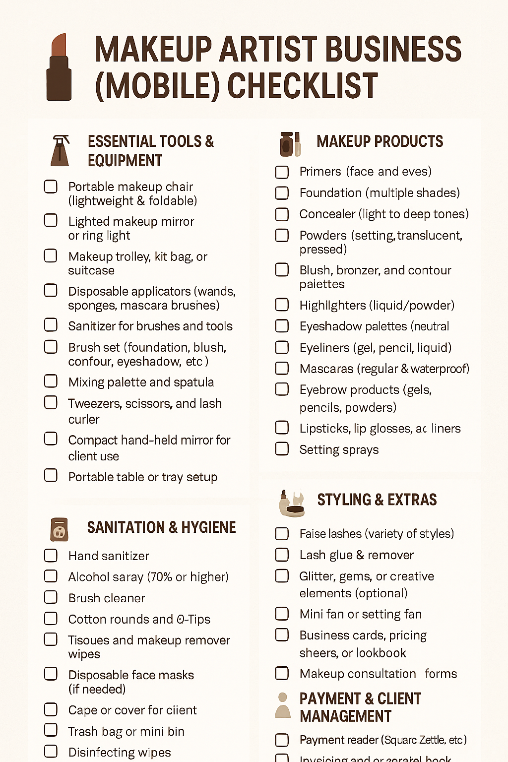 MAKEUP ARTIST BUSINESS (MOBILE) CHECKLIST