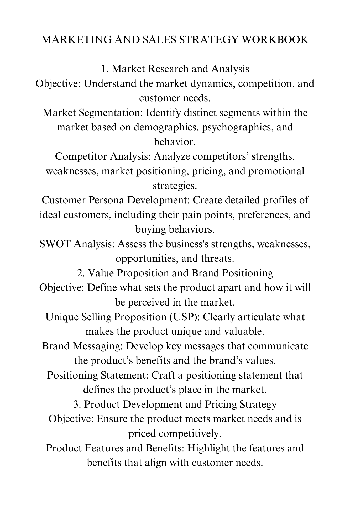 In today's competitive marketplace, having a well-crafted marketing and sales strategy is essential for small businesses to thrive. Introducing the "Marketing and Sales Strategy Workbook" – your comprehensive guide to developing a winning game plan that will propel your business towards sustained success.
