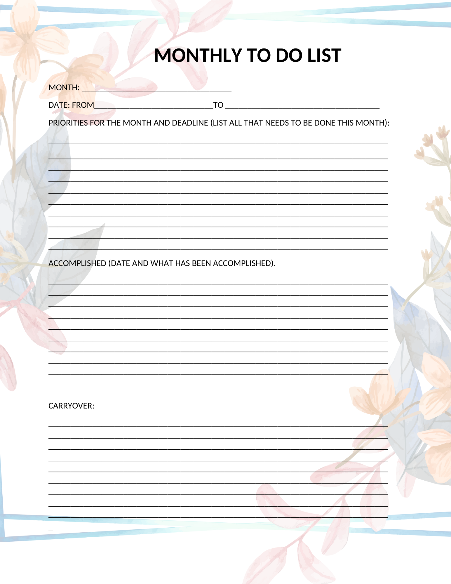 PRINTABLE MONTHLY TO DO LIST