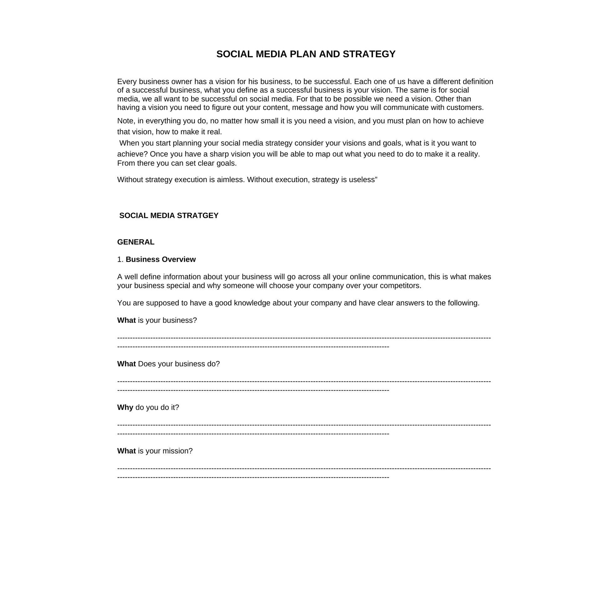 SOCIAL MEDIA WORKBOOK: PLAN AND STRATEGY