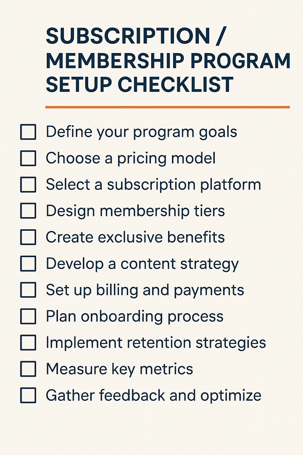 SUBSCRIPTION / MEMBERSHIP PROGRAM SETUP CHECKLIST