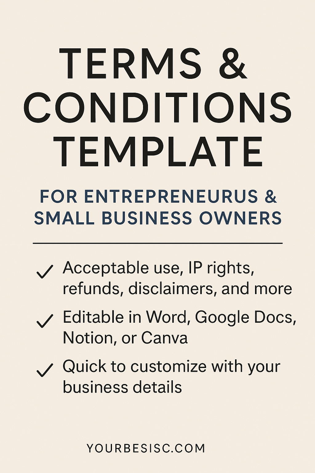 Set clear expectations, protect your content, and legally safeguard your website with this professionally crafted Terms & Conditions Template, designed specifically for entrepreneurs, coaches, service providers, and small business owners.
