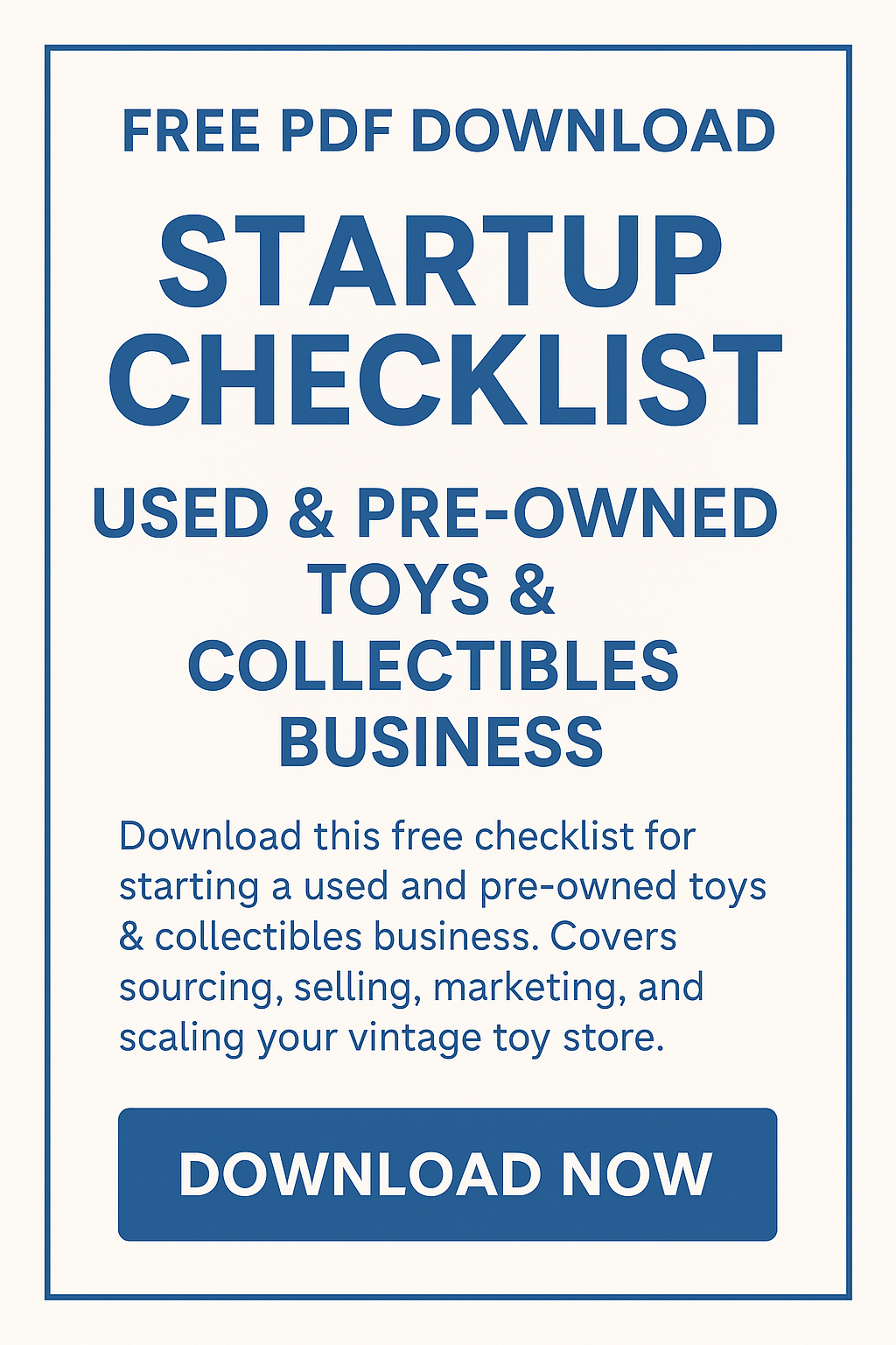 Ready to turn your love for vintage and collectible toys into a profitable business? This FREE downloadable checklist is your step-by-step guide to launching a successful used and pre-owned toys & collectibles brand. Whether you're a nostalgic collector, a reseller, or just starting out, this checklist covers everything you need—from sourcing inventory and setting up your store to marketing and shipping like a pro.
